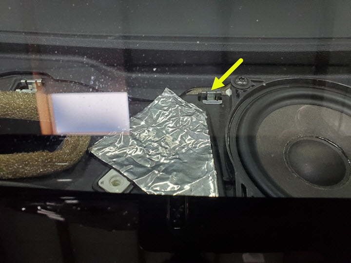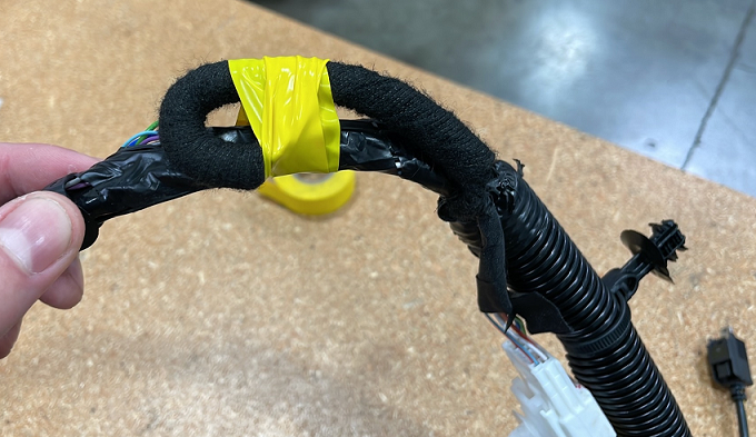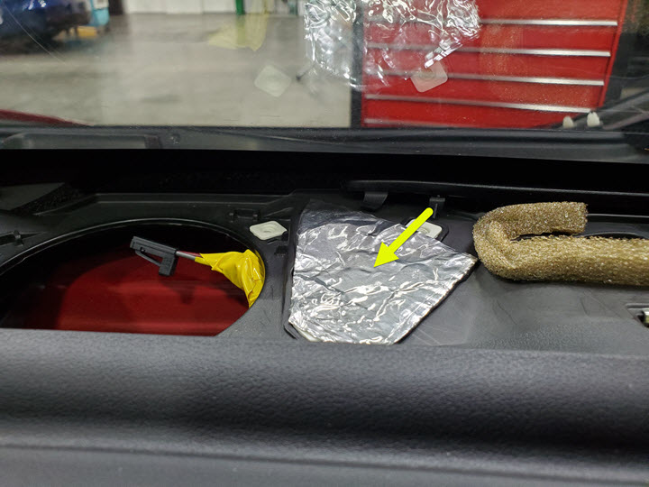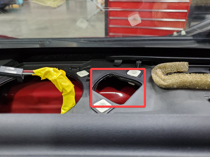 CAUTIONDo NOT cut holes into the new instrument panel carrier as an attempt to retrofit the tweeters.CAUTIONFailure to tape back the existing tweeter connector may result in NVH issues.NoteUse black tape. The yellow tape used in the picture is for demonstration purpose only.