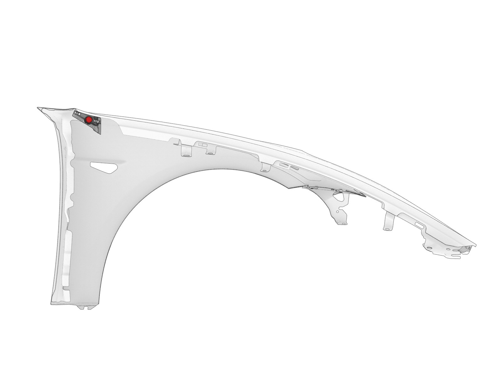 - Remove the bolt that attaches the lower LH front fender to the vehicle.