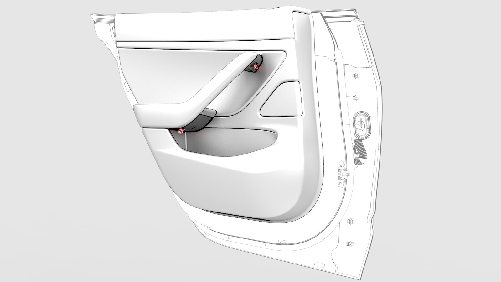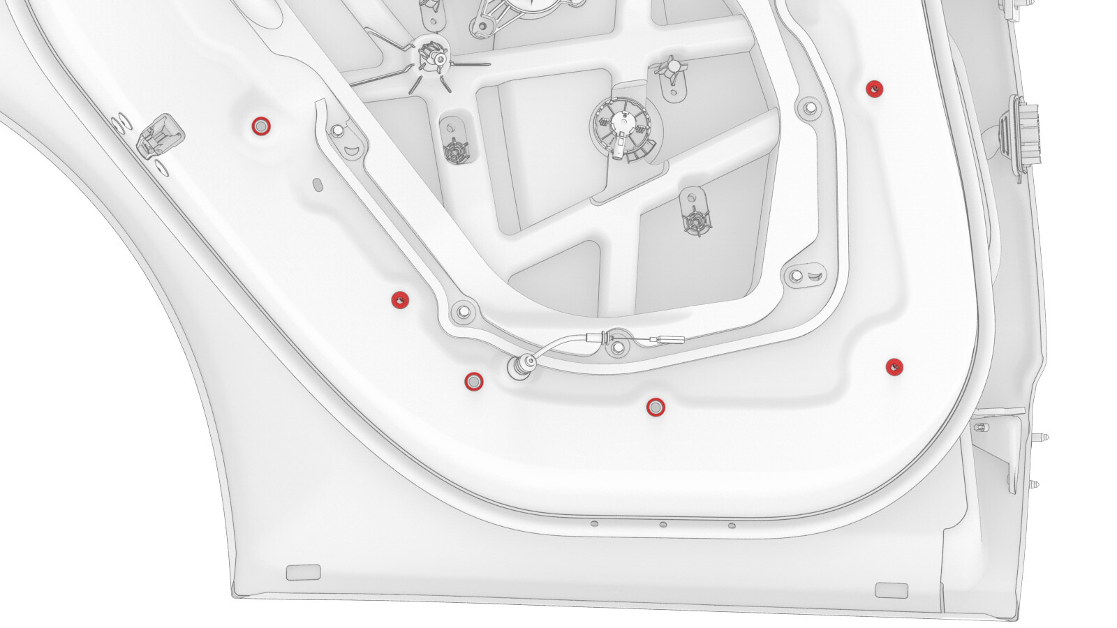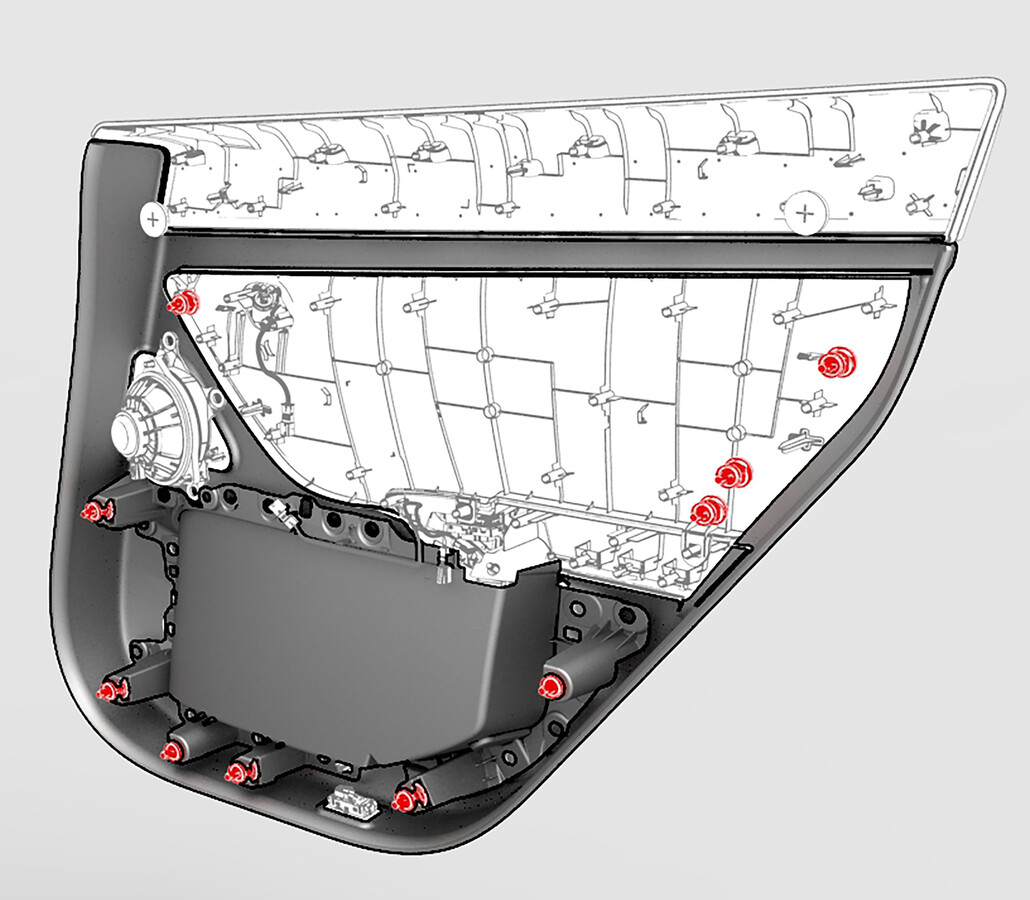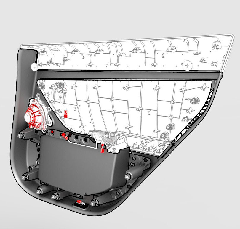 - Check the LH rear door for any remaining push clip retainers, and if present, remove them from the door.