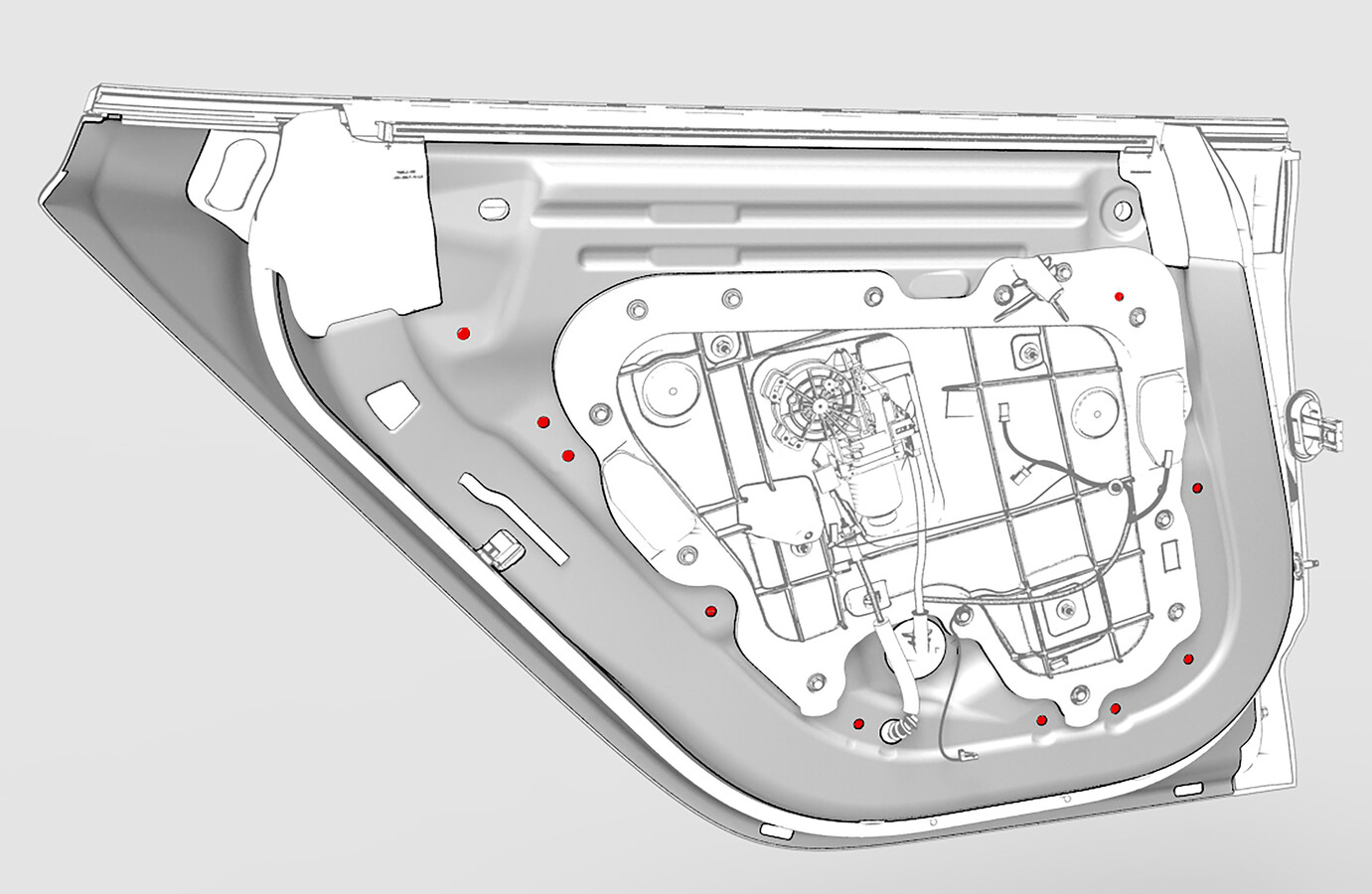 - Inspect the condition of the LH rear door and the LH rear door trim panel. Replace any broken clips and repair any damage.
