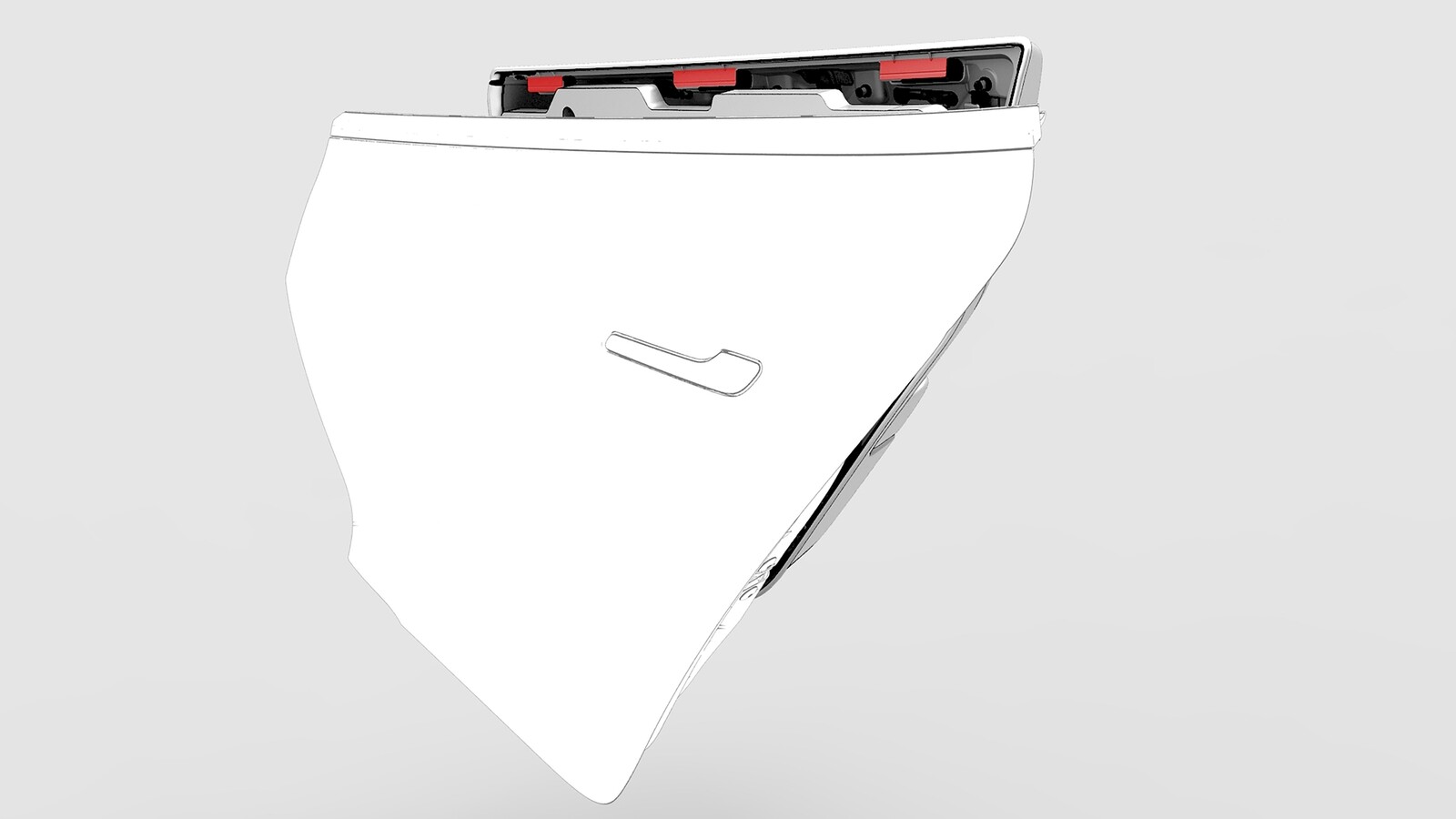 - Lift the trim panel, compress the LH rear door inner belt seal slightly, and hook the three trim panel tabs into the top edge of the door.