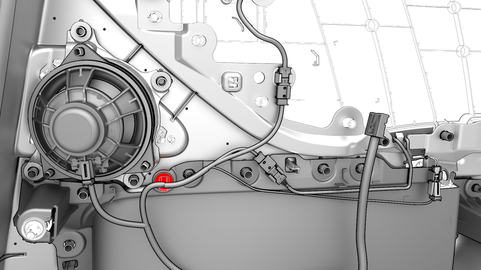 WarningIf the door light connector is plugged into the speaker, the speaker is permanently damaged and might cause melting. Do not interchange the electrical harness speaker connector and door light connector.
