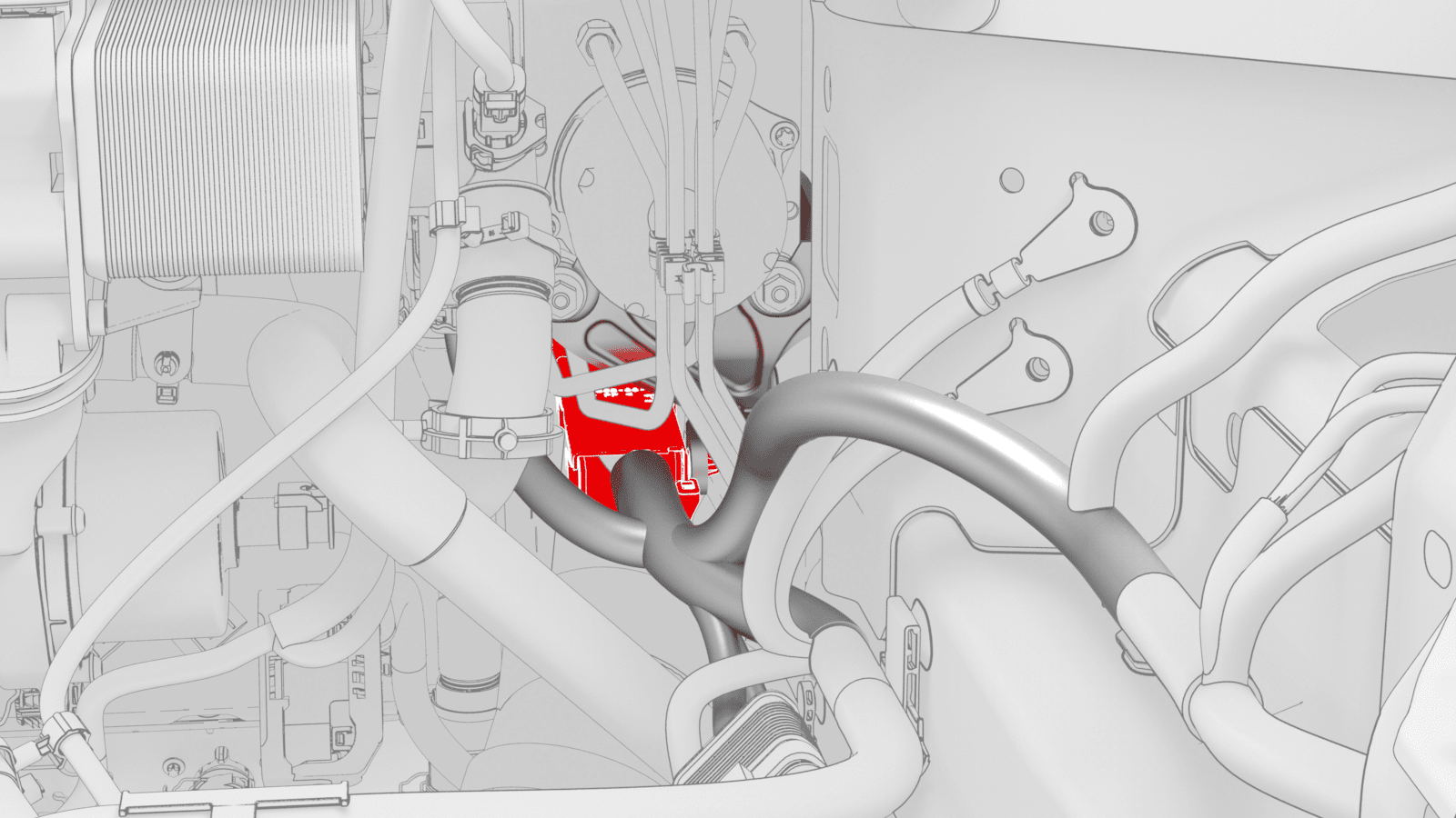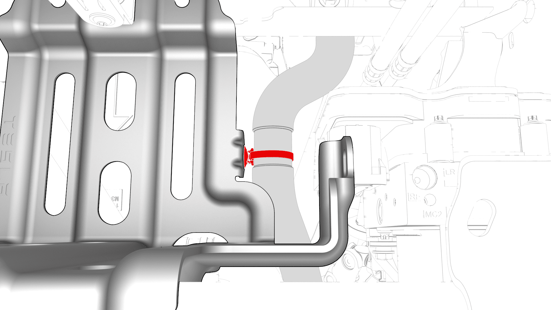 - Release the clip that attaches the chiller-to-battery coolant hose to the bracket, and move the hose aside.