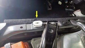 - Press the upper locking tabs to removal LH seat cushion clip.