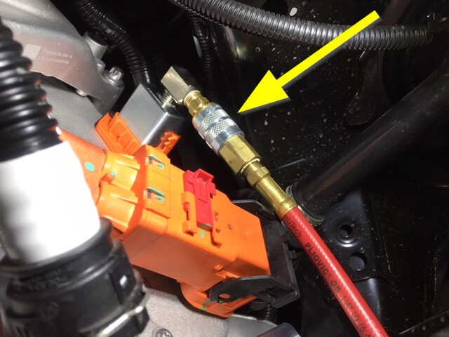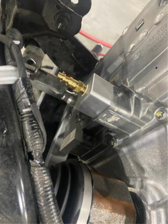 - Install the leak test adapter into the rear drive unit HV header.
