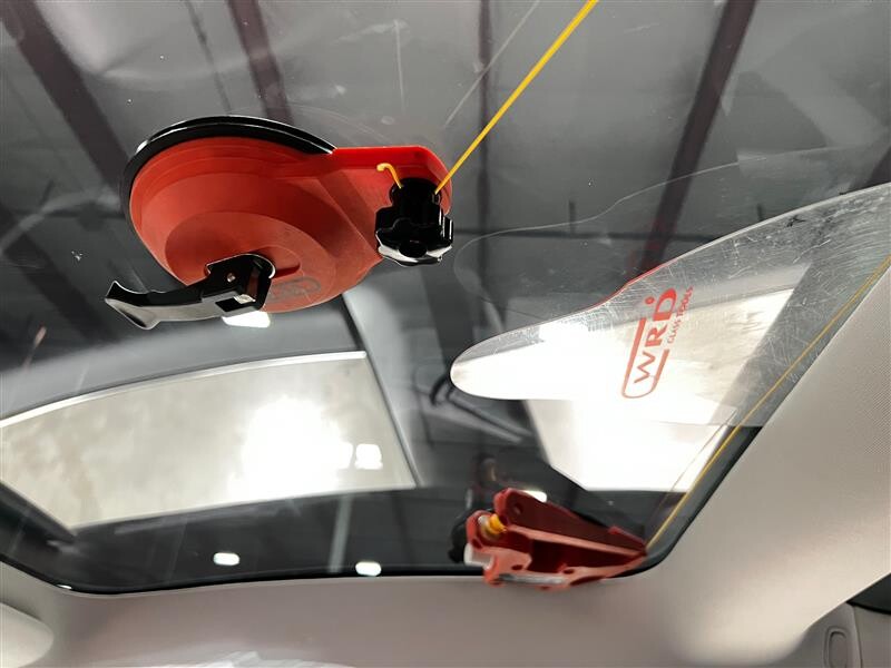 Release the line from the starter tool and wrap the line around the exterior of the fixed roof glass assembly.