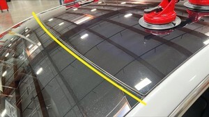 - With an assistant, install the new fixed roof glass onto the vehicle, but do not set it yet.