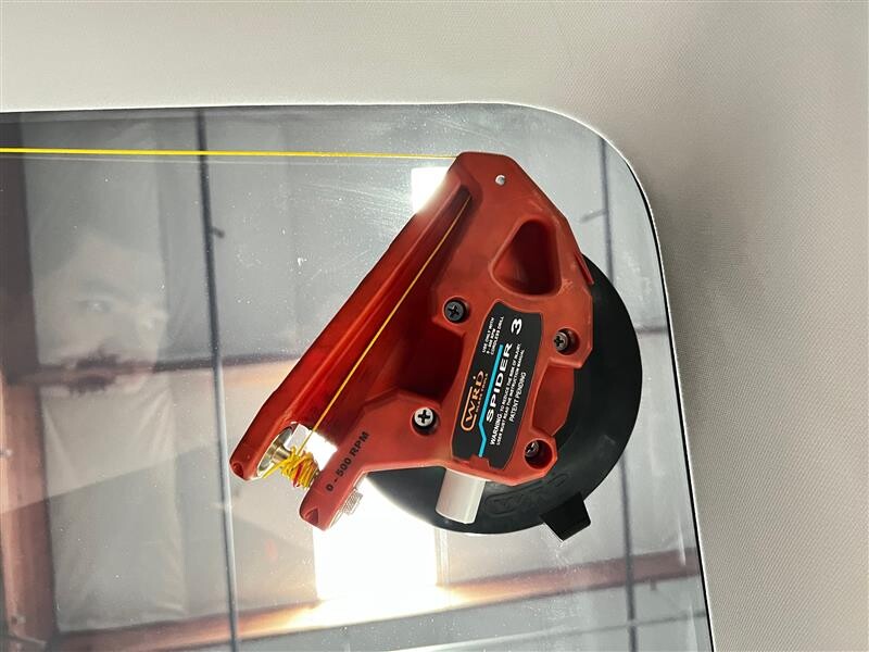 Secure the Spider cutting tool to the interior side of the fixed roof glass assembly.