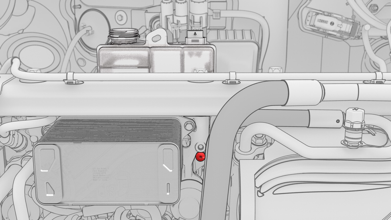 | Screw that attaches the front of the coolant bottle to the supermanifold |