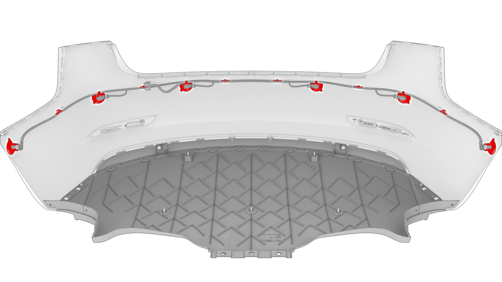 - Remove the clips that attach the rear fascia harness to the upper rear fascia, and then remove the harness from the assembly.