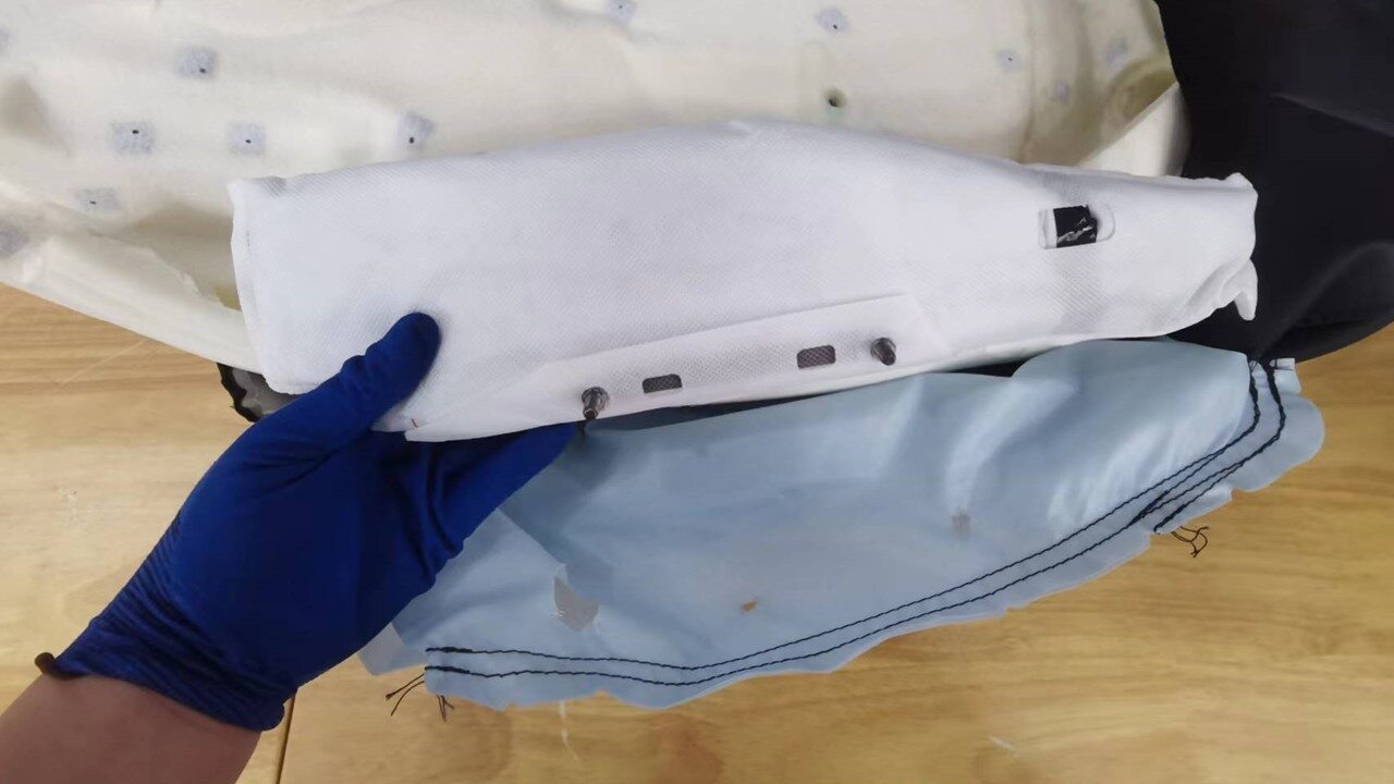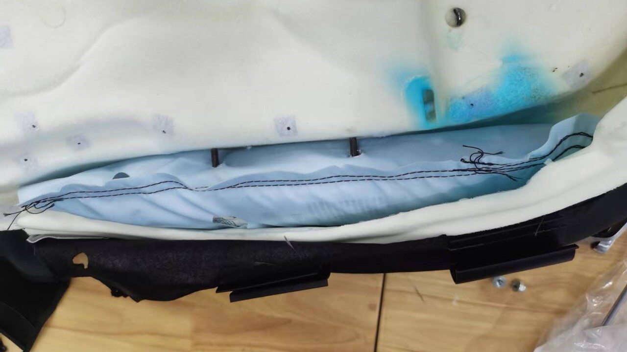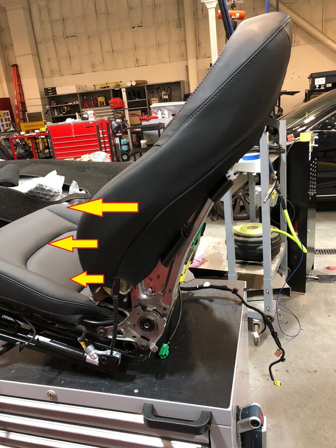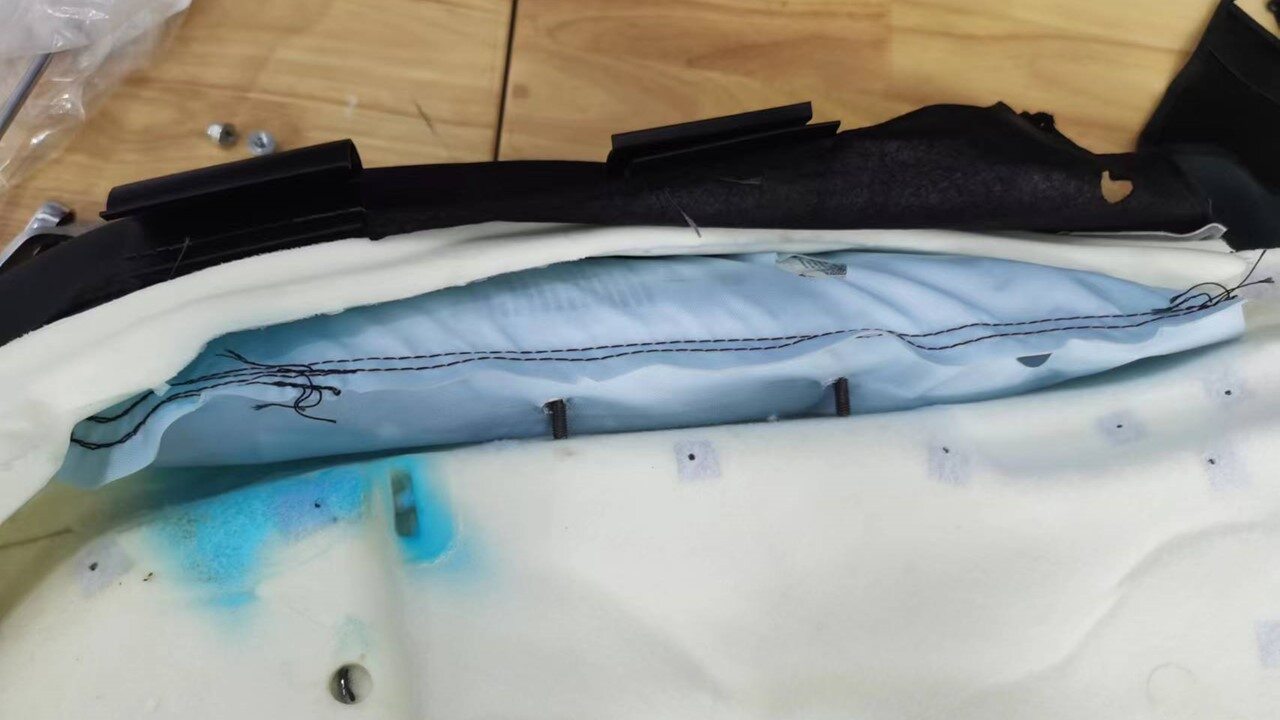 - Remove the hog rings (x3) that attach the remaining trim to the seat foam, and then remove the driver seat back cover with inboard airbag from the seat assembly.