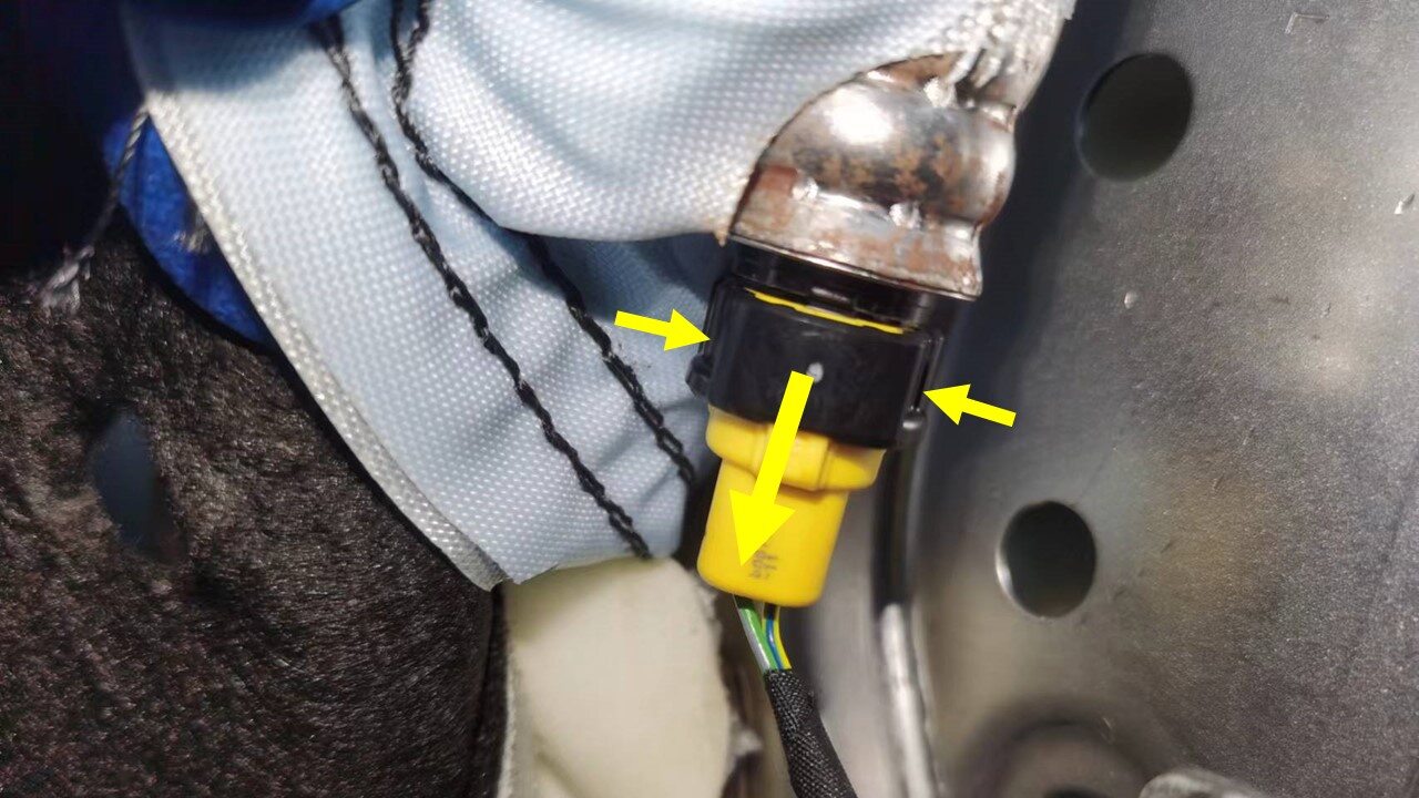 - Slide the seat back heater connector downward to release it from the seat assembly.
