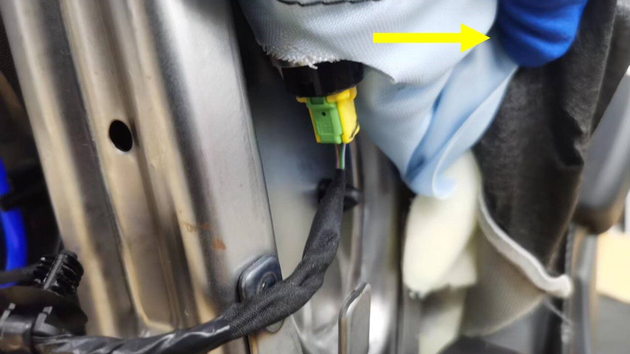 - Disconnect the seat back heater connector.