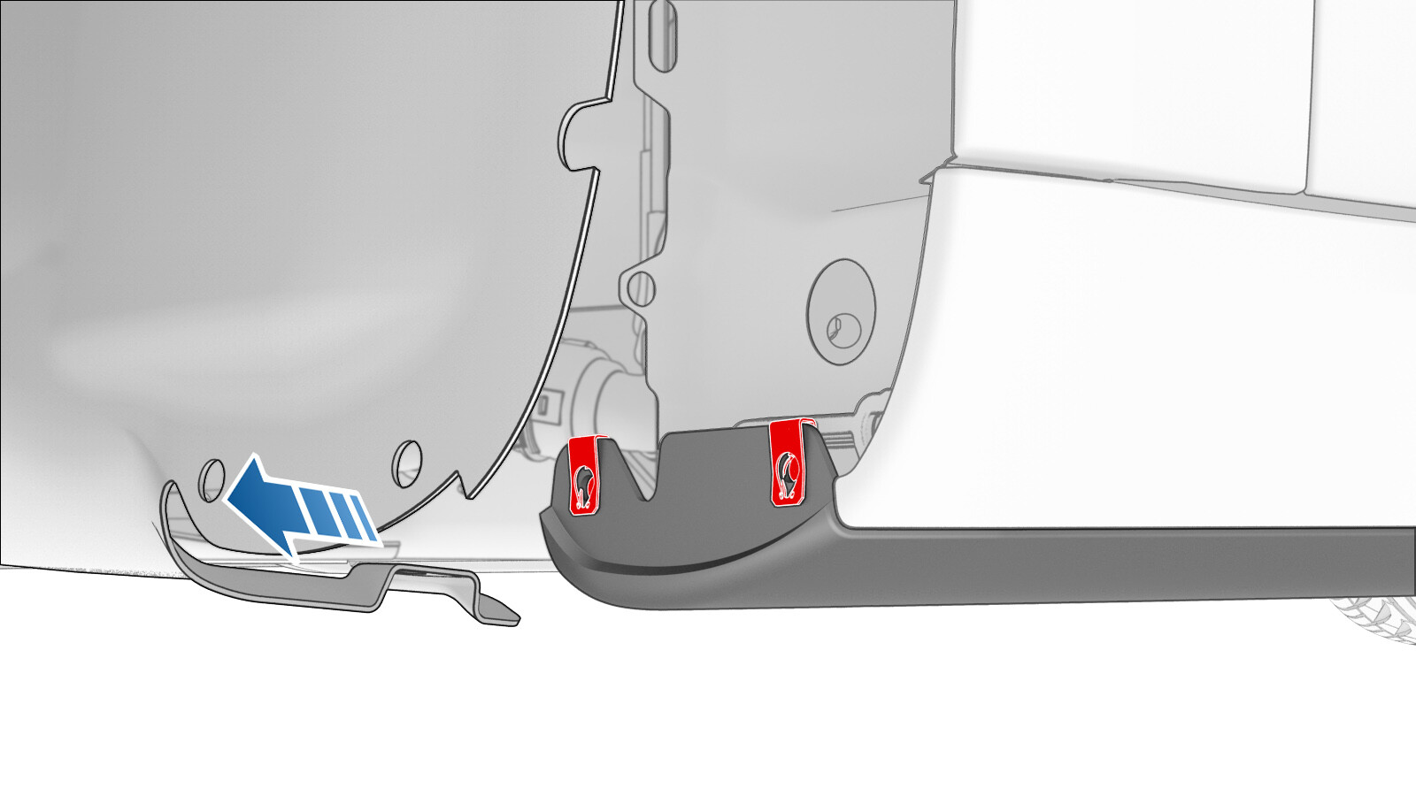 - Remove and discard the push clips that attach the front LH wheel arch liner to the lower rocker panel cover.