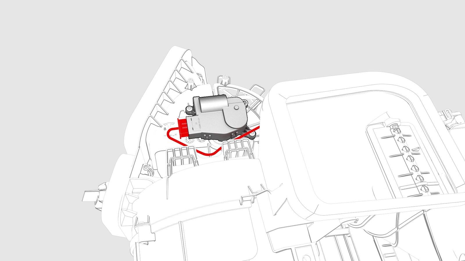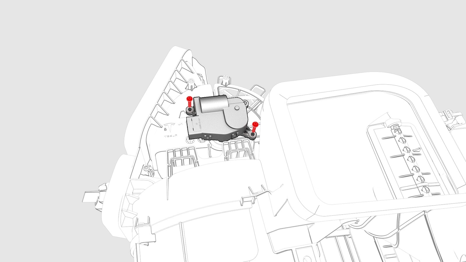 Remove the screws (x2) that attach the intake actuator to the HVAC module, and then remove the actuator from the HVAC module.