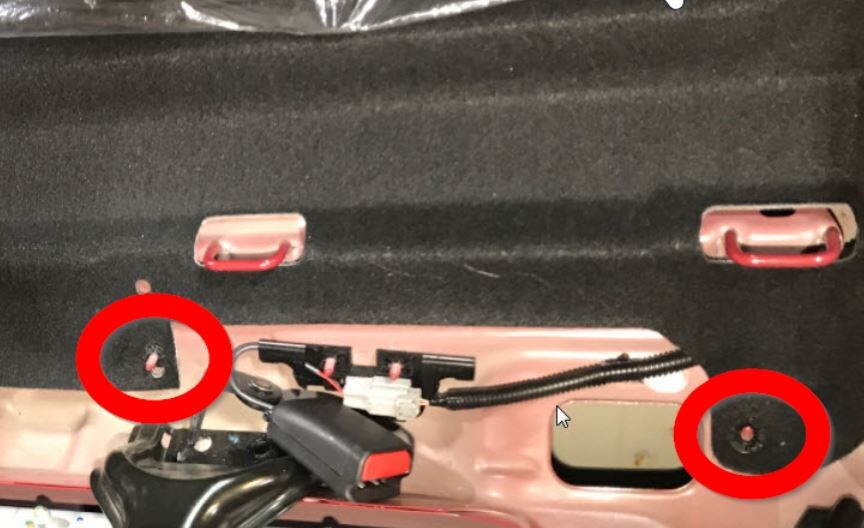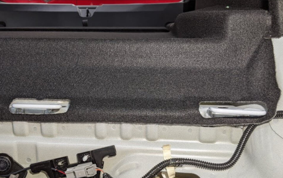 - Inspect the LH side of the trunk carpet, under the LH 2nd row seat back.
