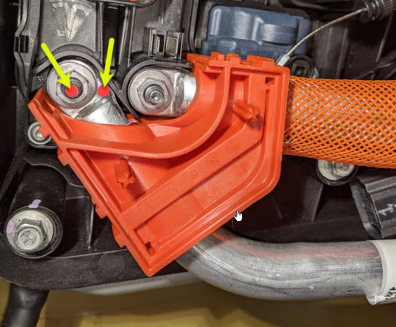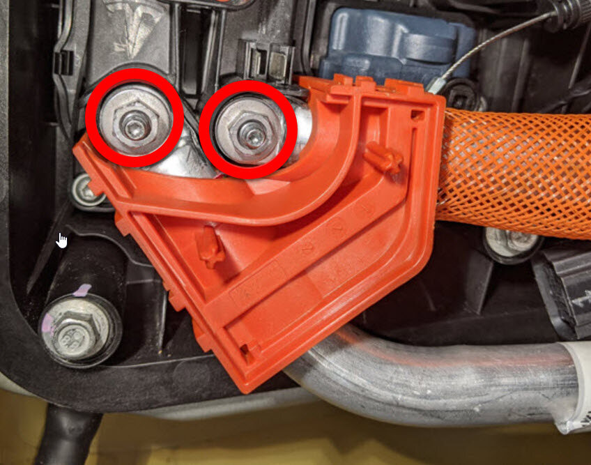 joint from HV busbar lead to charge port stud.