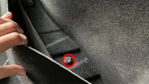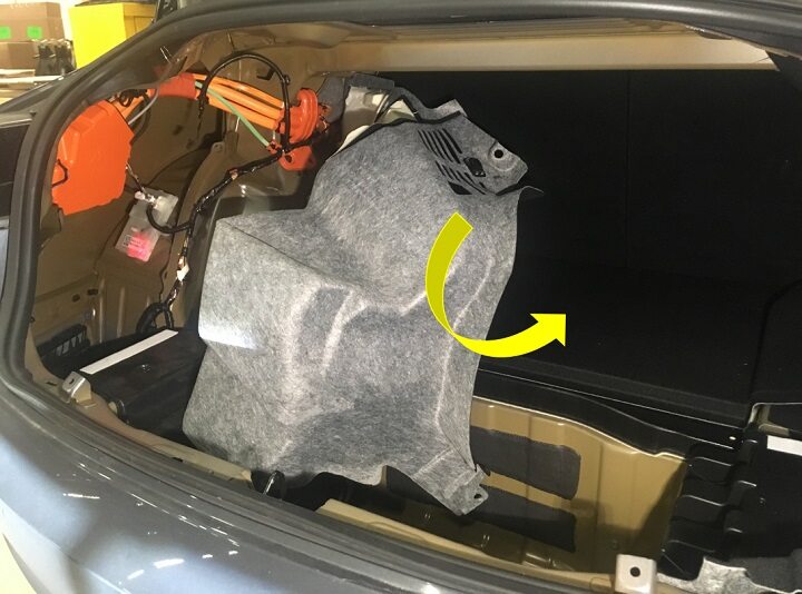 Release edge of trunk carpet and move LH