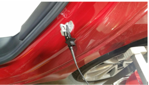 - Secure charge port manual release cable onto body clip.