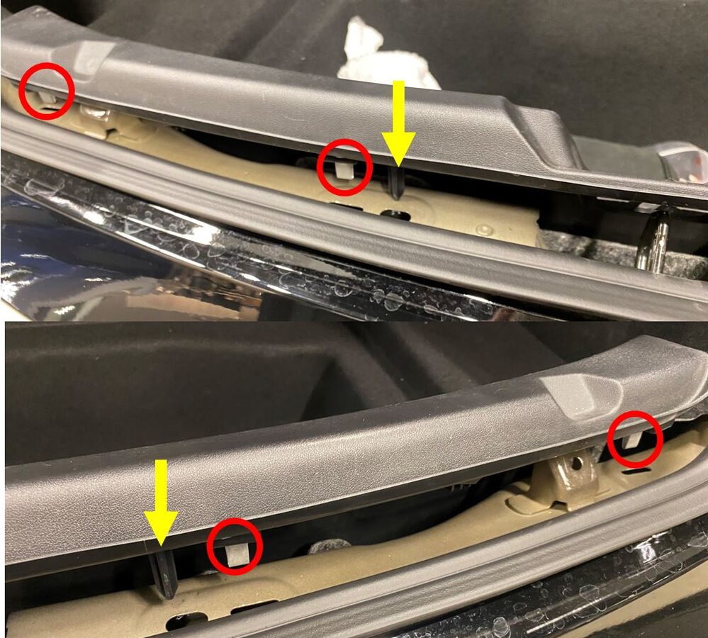 Note6x clips, Number of clips may vary on newer vehicles, Verify trunk seal is fully seated along garnish