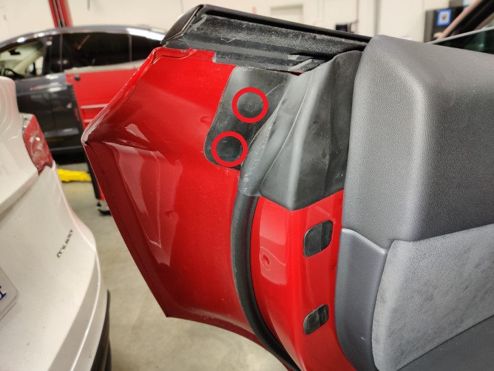 - Install the LH rear glass run seal clips (x4) to fully access the LH rear door secondary seal.