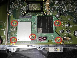 - Remove and discard the screws (x5) that secure the connectivity card.