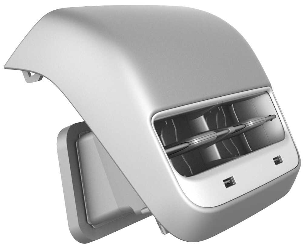 - Disconnect the electrical harness from the center console rear USB hub connector, and then remove the center console rear vent assembly from the vehicle.