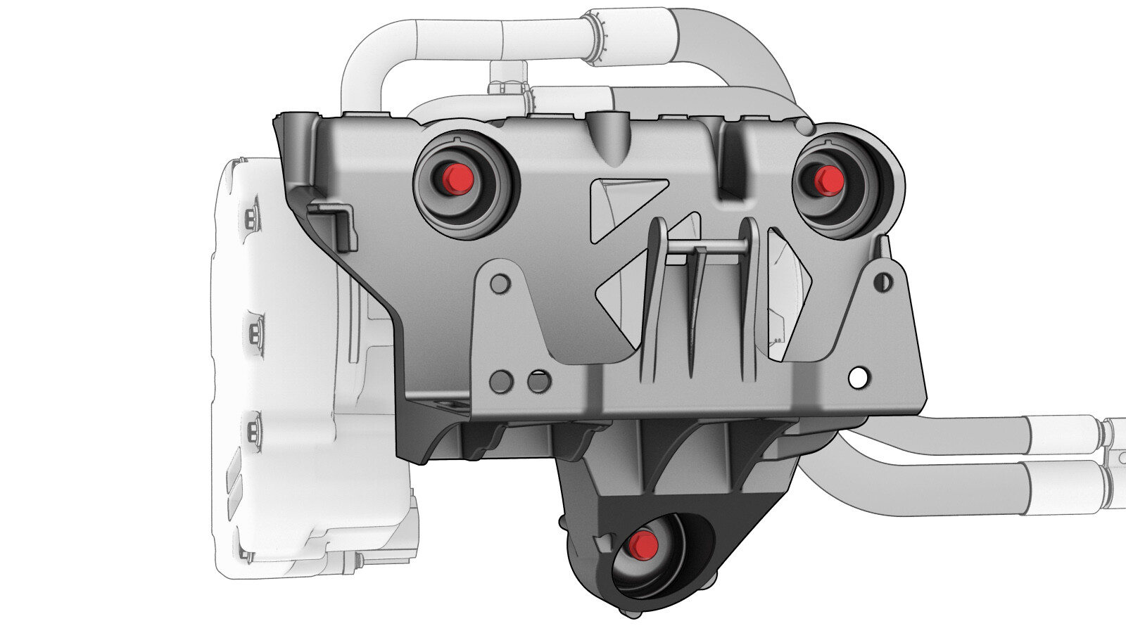 | Bolts that attach the A/C compressor assembly to the strut tower brace |
