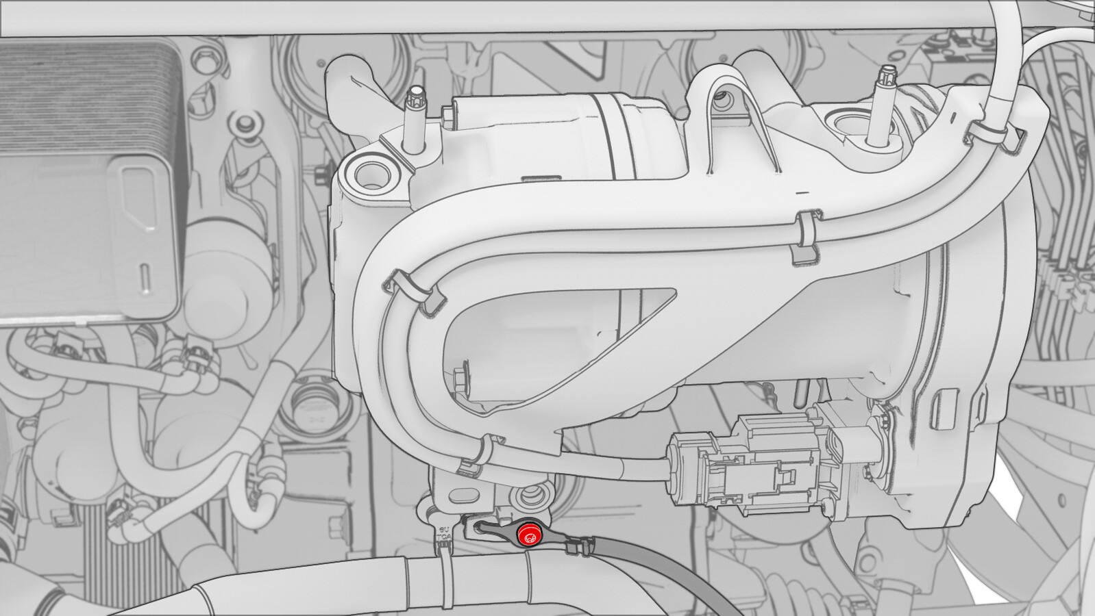 - Install the clip that attaches the A/C compressor low voltage harness to the A/C compressor HV harness bracket.