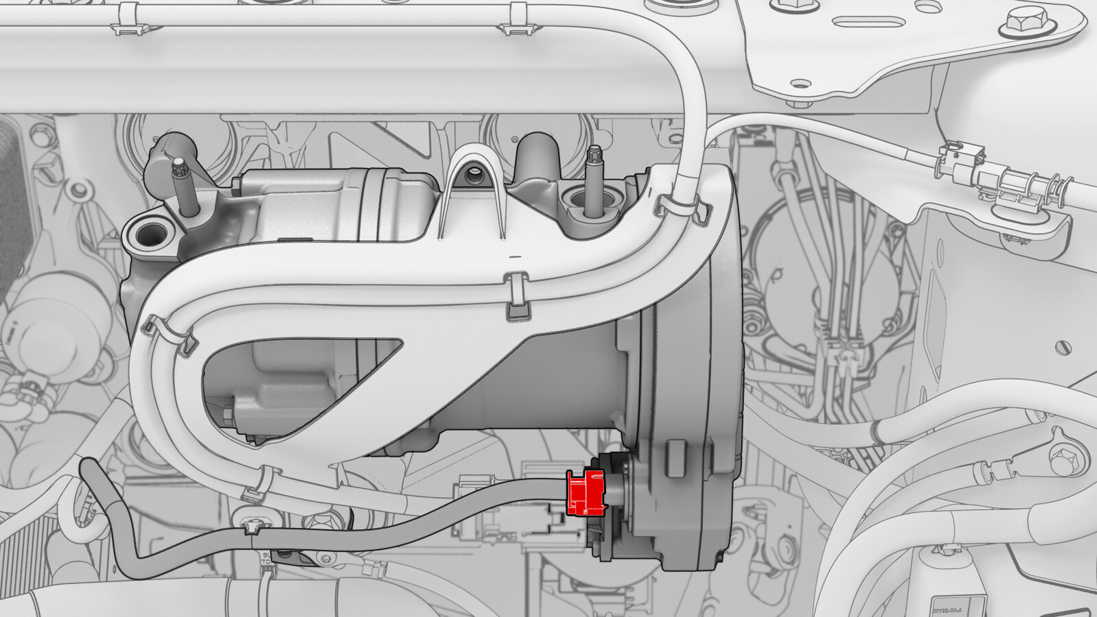 - Move the HV harness bracket forward and up to release the bracket from the A/C compressor, and then carefully set the bracket aside.