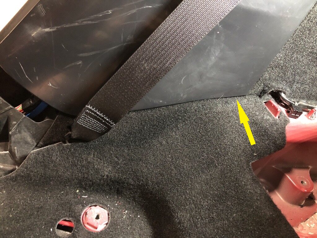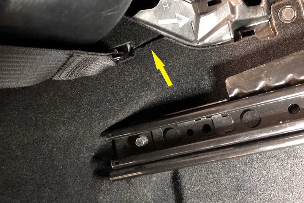 NoteCut a thin straight line on 3rd row carpet from seat belt opening to edge of carpet