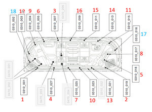 Note5x patch bolts, 11mm, 37 Nm, Install new patch bolts, Bottom seat bolts located behind main carpet, Torque in sequence; Outboard front -> Both inboard rear -> Outboard rear -> Inboard front