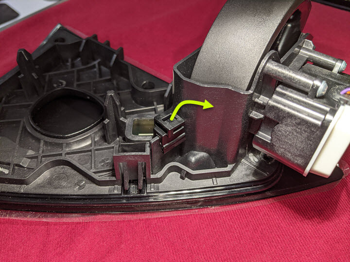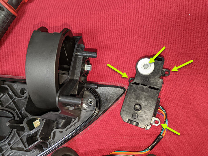 - Remove the screws (x3) that attach the actuator to the charge port door assembly, and then remove the actuator from the charge port door.