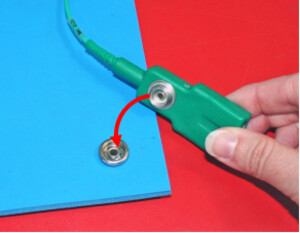 - Make sure that the snap button connector of the ground cord is securely fastened to the ESD mat.