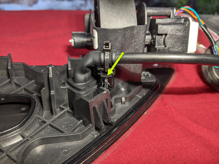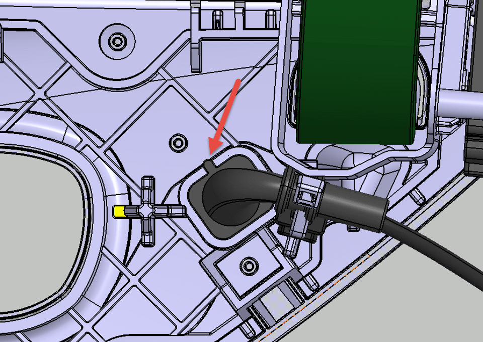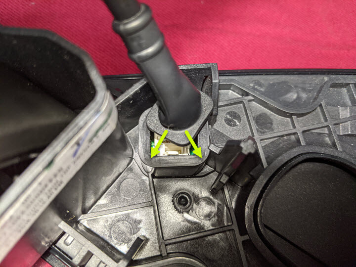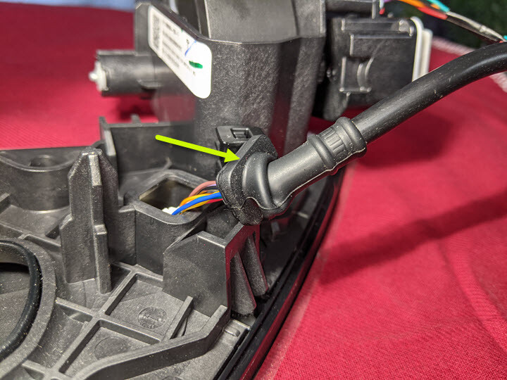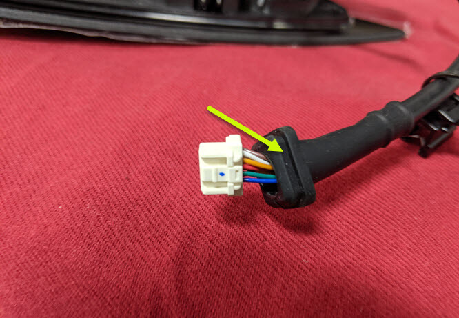 - Peel the whole grommet back to expose the charge port door electrical harness.