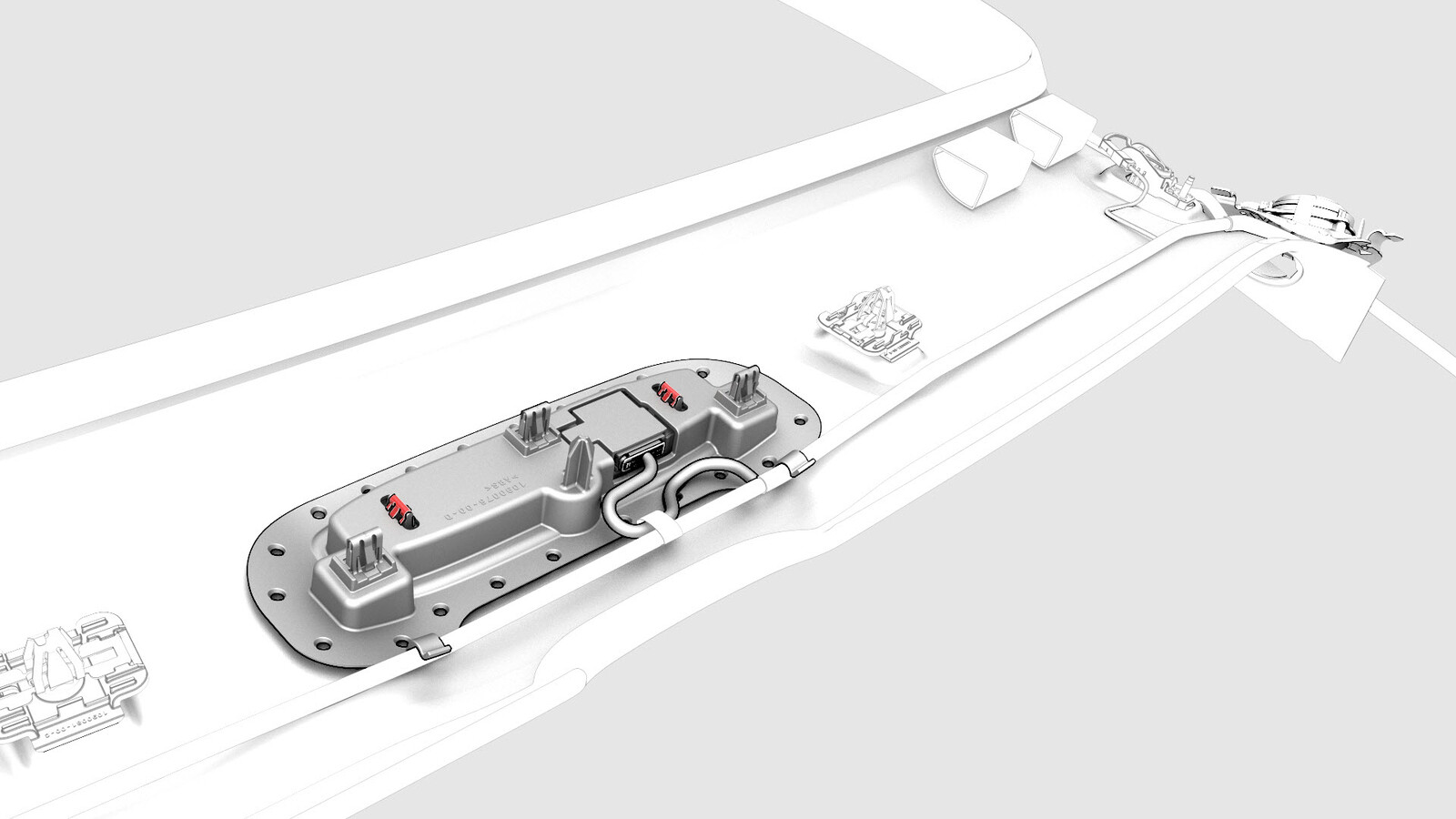 - Connect the electrical harness to the rear overhead console connector.