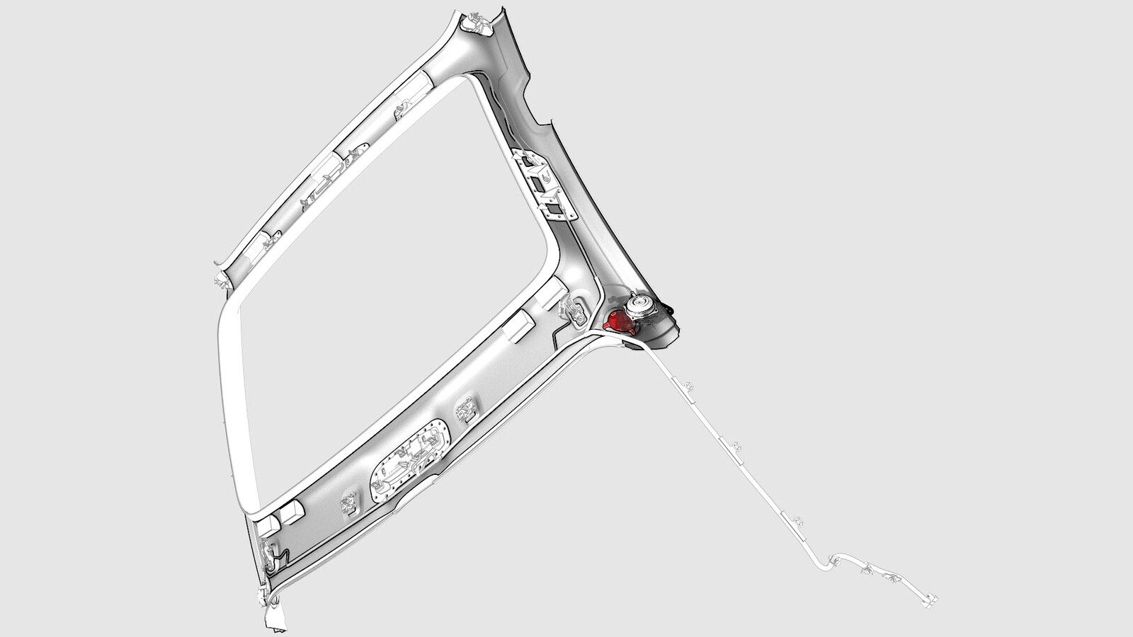 - Install the LH coat hook bezel to the LH coat hook assembly, and then fasten the clips that attach the coat hook bezel to the coat hook assembly.