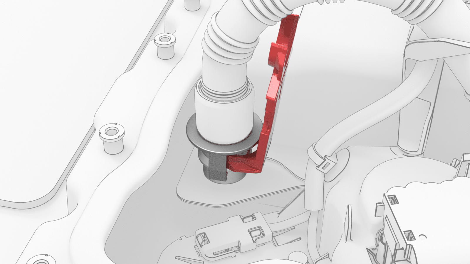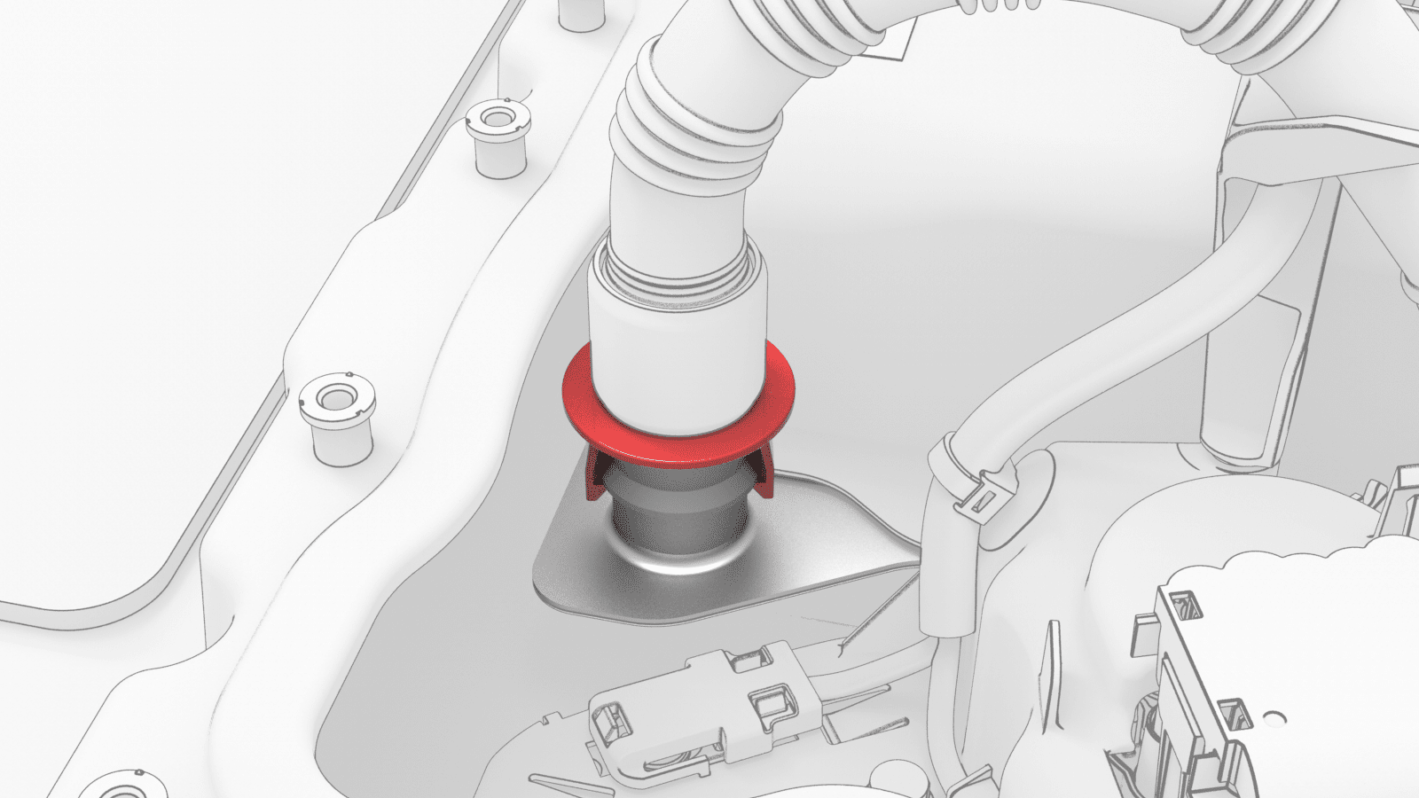 - Install the coolant output tube into the power conversion system and the battery flange.