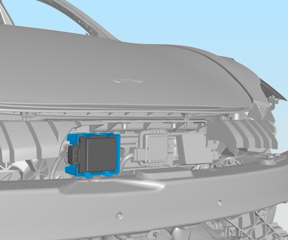 - Connect the front radar sensor wiring harness to the front end carrier clip.