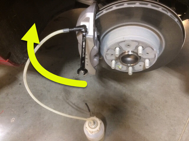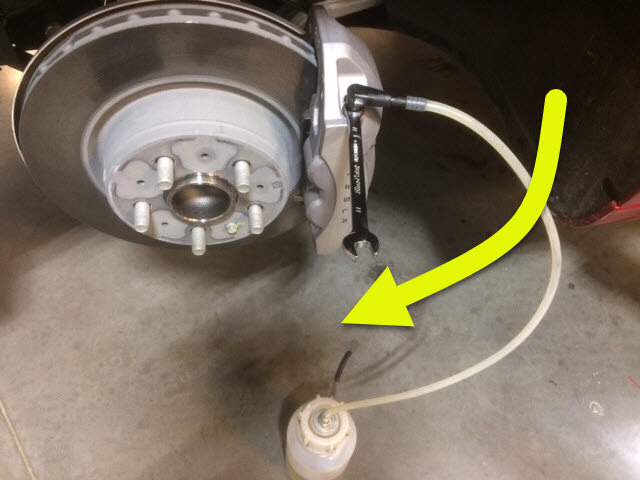 install the fluid catching bottle to LH rear brake caliper bleeding valve before