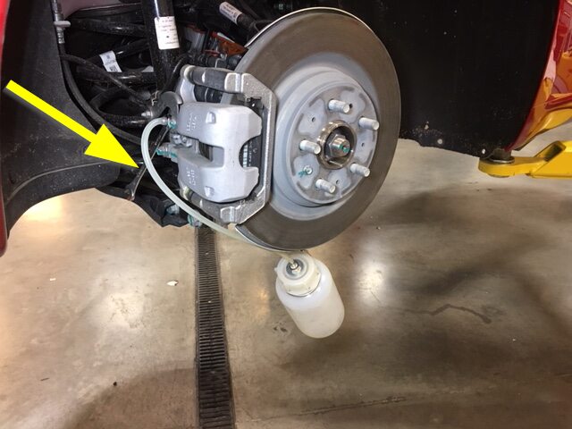 install the fluid catching bottle to RH front brake caliper outer bleeding valve before
