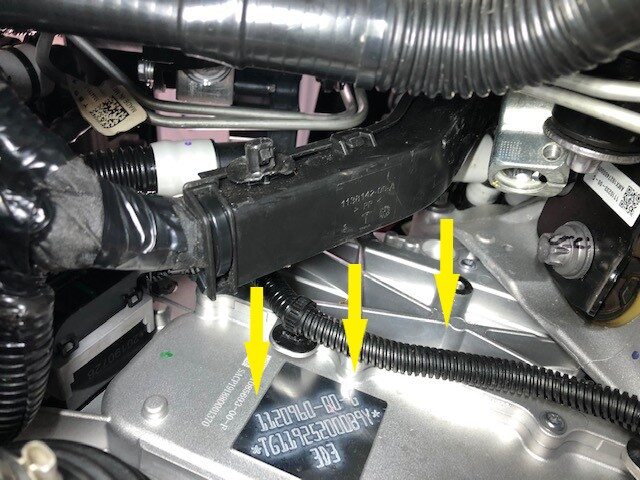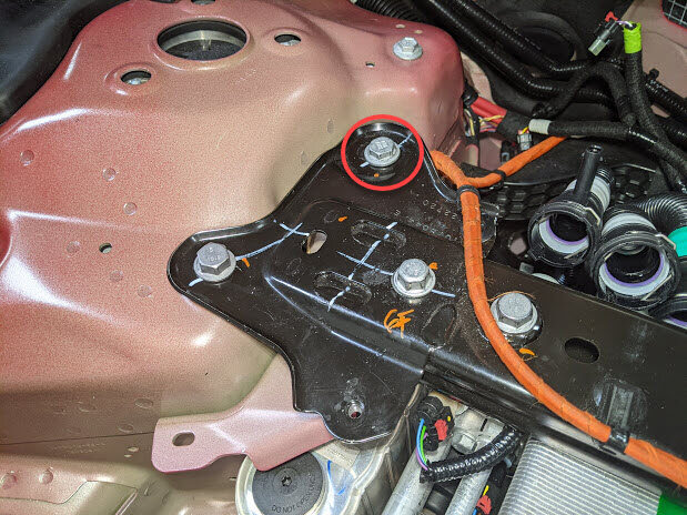 Note7x bolts, 10mm, 5 Nm, Lift up RBN covers to access upper fasteners, Newer vehicles may not be equipped with covers