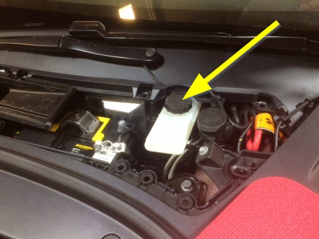 - Clean area around brake fluid reservoir and remove brake reservoir cap