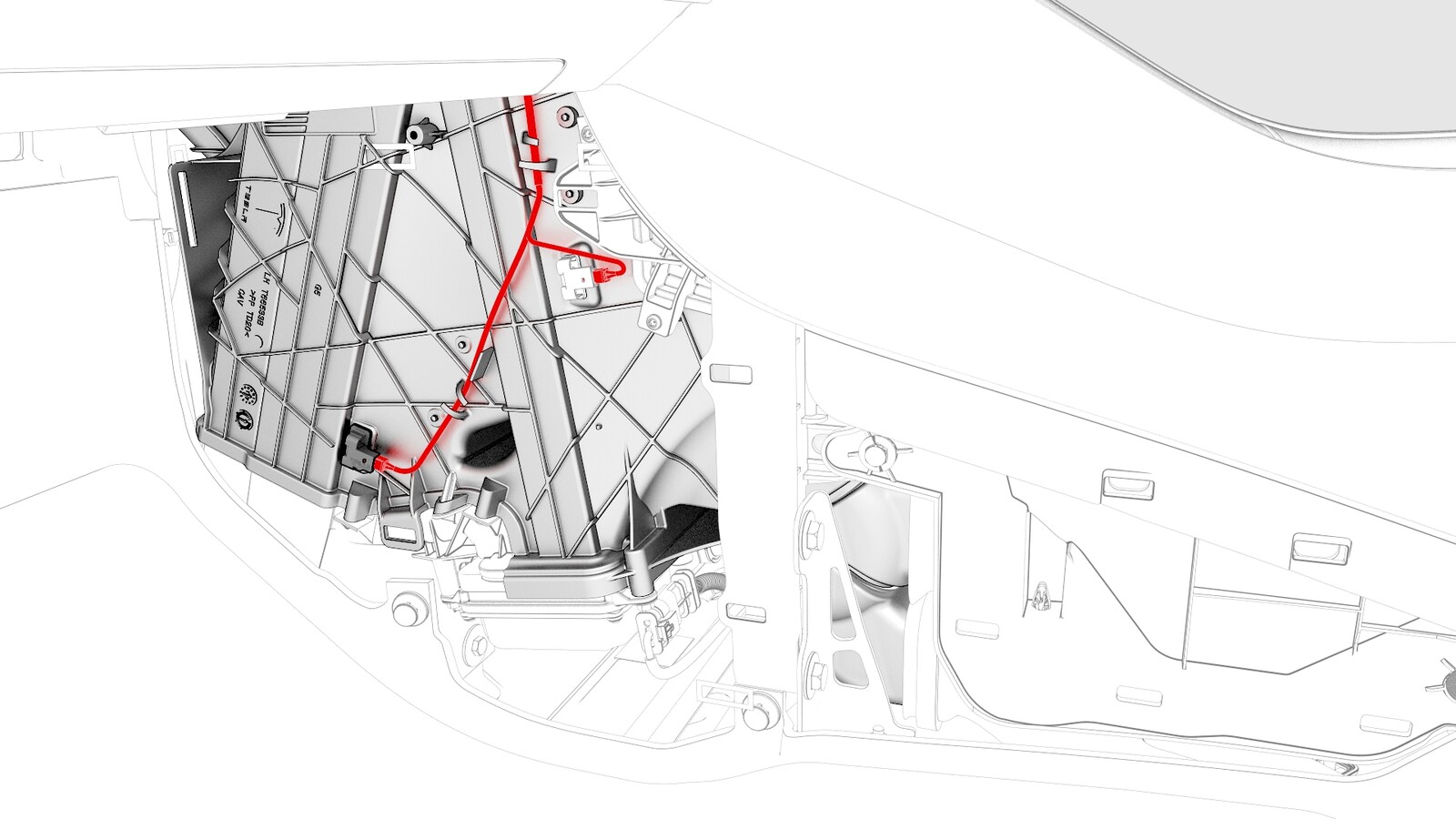- Install the evaporator temperature sensor onto the HVAC assembly, and then secure the sensor with 2 tabs.