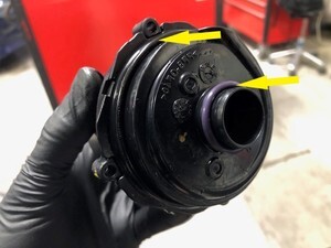 NoteMake sure both o-rings (inner purple and outer black) come off with old pump.