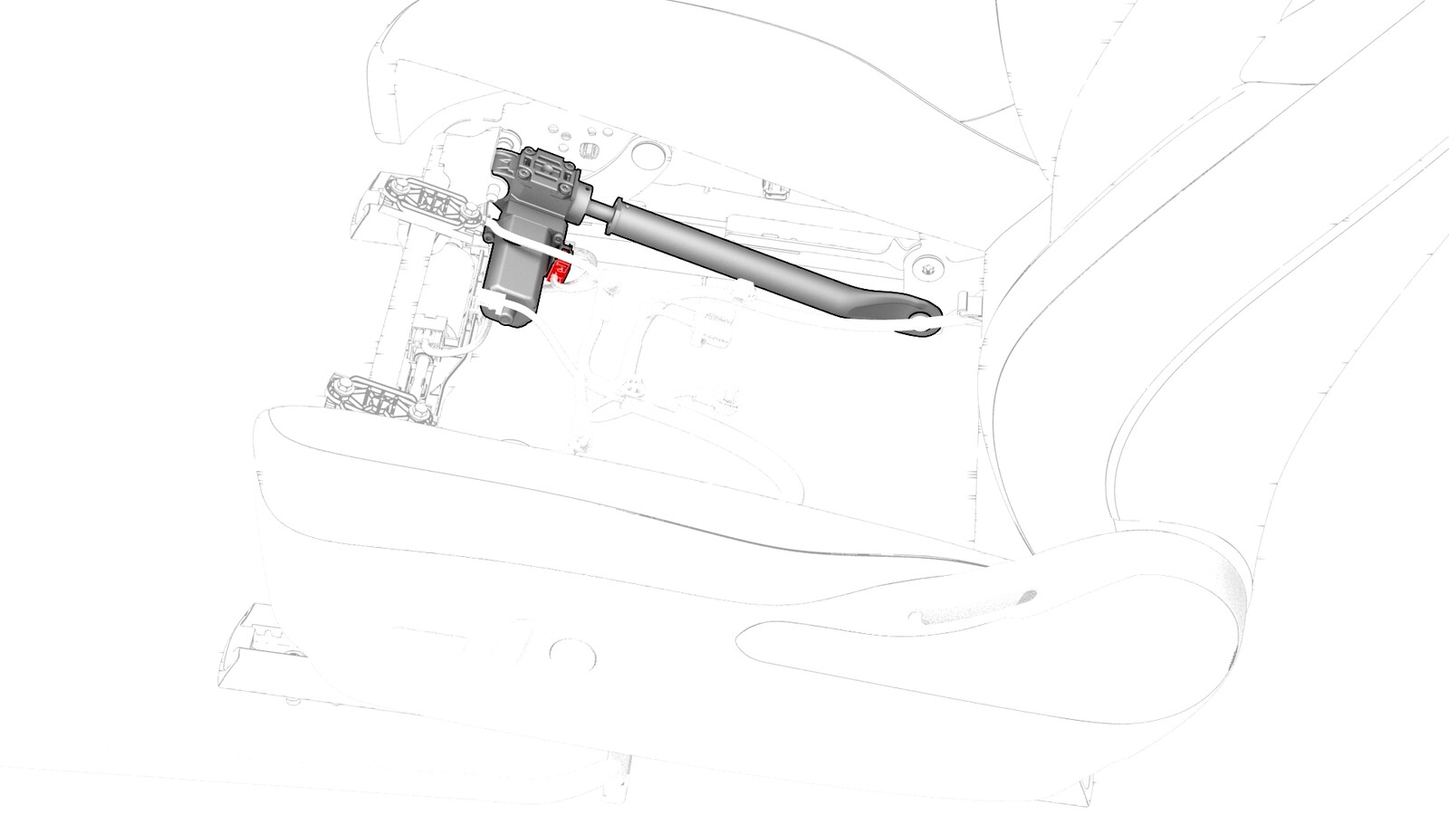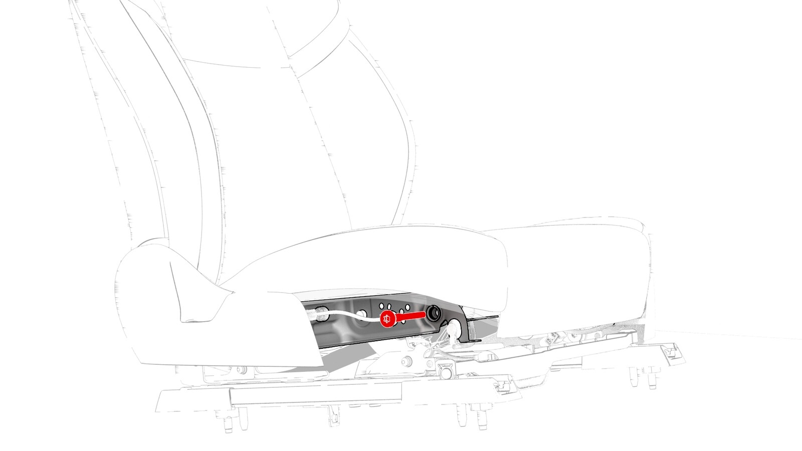 - Remove and discard the patchbolt that attaches the seat height motor to the seat cushion frame.