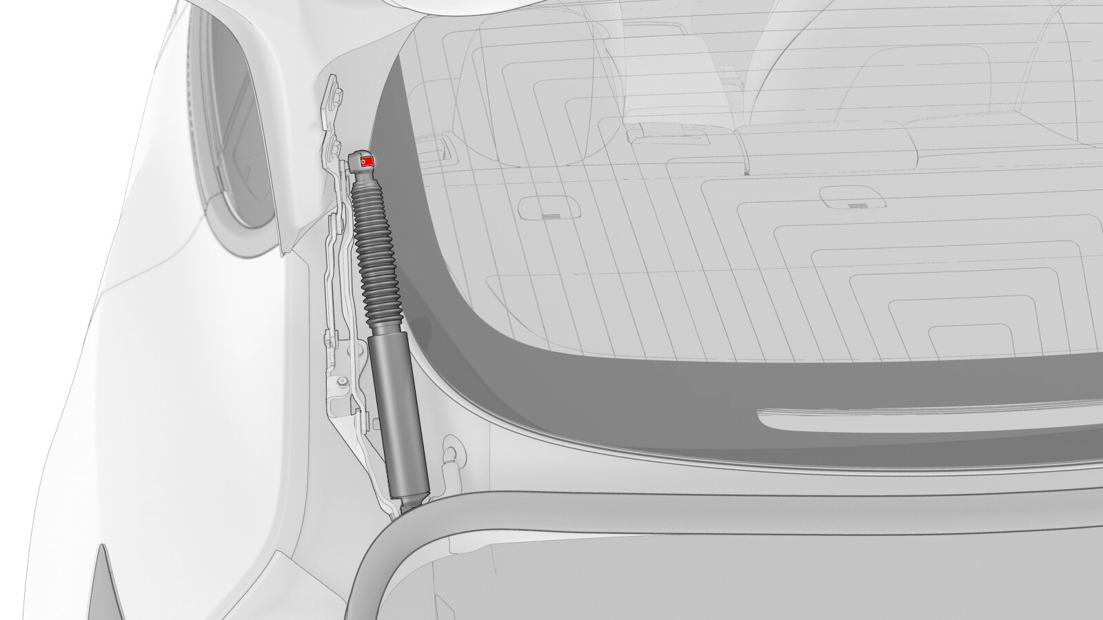 CAUTIONMake sure that the clips that attach the power strut ends to the trunk are securely attached to avoid the strut to become loose and damaged.