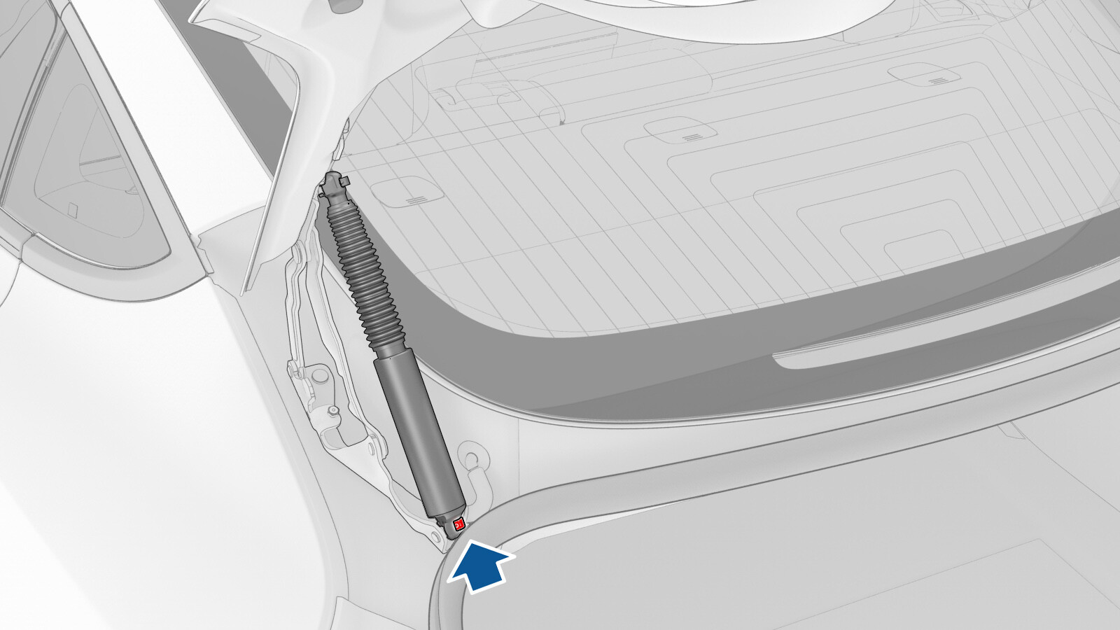 - Push the trunk power strut rubber grommet through the body of the vehicle.