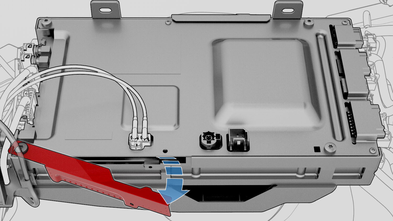 - Use a mirror and tweezers to move the catch to the right, and release the SIM card from the slot in the car computer.