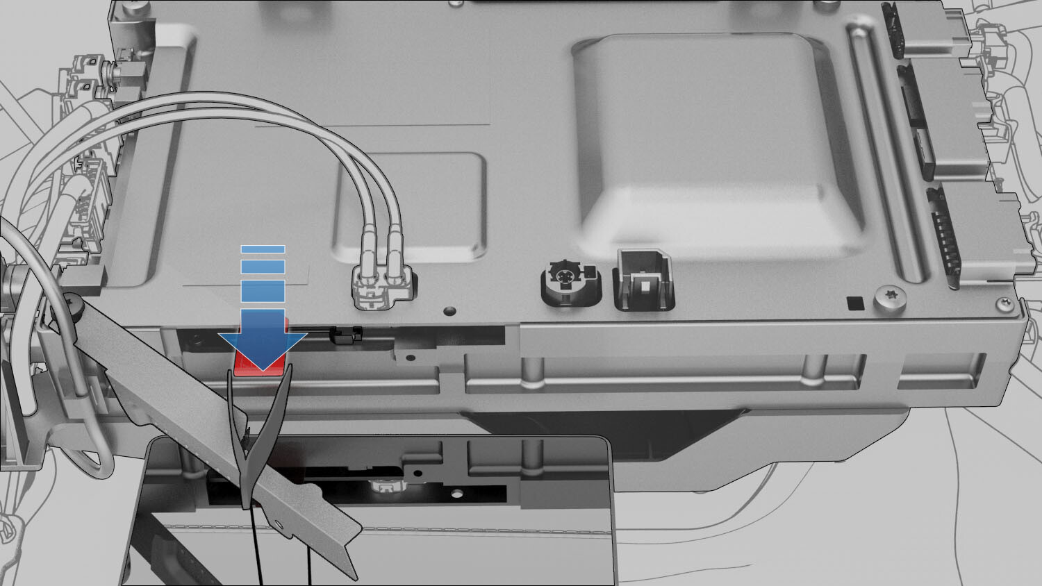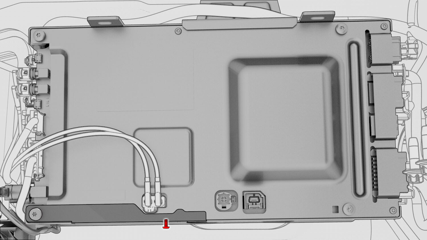 - Loosen for two revolutions the lower LH screw that attaches the car computer to the bracket.